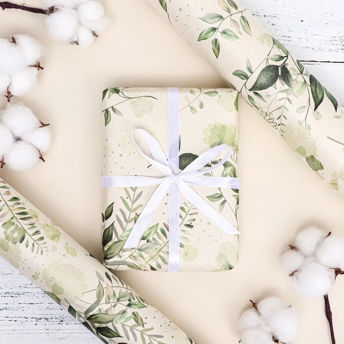 Бумага упаковочная крафтовая "Полет листьев"